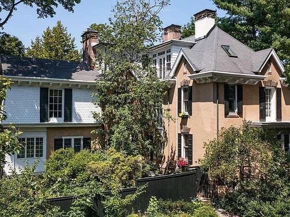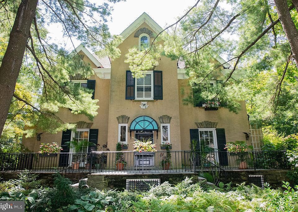 Welcome to Yellowstone. Designed by Theophilus Chandler, founder and president of The University of Pennsylvania's architectural school, this unique and graceful home was built in 1888 for a Union general, who was one of the first recipients of the Medal of Honor. Its colorful history also includes Grace Kelly spending a good part of her childhood here, riding horses out of the stable/carriage house. Her 1956 "Wedding of the Century" to Prince Rainier of Monaco was planned in the main house, with the help of her godmother Pauline McCloskey, then owner of the property. Entering the home, you'll find a living room with attached office to your left and a beautiful wood paneled den with a working wood burning fireplace to your right. That room connects to another office area that leads to butlers pantry and a warm inviting kitchen overlooking the gardens and yard. The second floor has two bedrooms with an adjoining full bath and another library that leads into a former billiards room with a vaulted ceiling that has been used for formal dinners and could also be used as another bedroom. The third floor has a spacious primary suite with french doors overlooking the yard and an attached dressing room and another full bath. There are two outbuildings with three one bedroom units that house tenants providing almost $5,000 in rent. There is the charming cottage house and the carriage house which has a garage that can fit three cars and above it two generous sized apartments, each with their own wood burning fireplaces and an adjoining patio overlooking a private and beautiful garden. The location can't be beat. Situated at the Top of the Hill across the street from the Library, you can walk out the door and make your way to the many charming shops and restaurants that line the Avenue. The Chestnut Hill West and East Railroad Lines are within two blocks for an easy ride into Center City. Also within walking distance are numerous entrances to the beautiful Wissahickon Valley of Fairmount Park with its many trails for hiking, biking, horseback riding and bird watching along with its picturesque stream with a covered bridge and waterfalls. There is also easy access to the PA Turnpike, the Blue Route and 76.