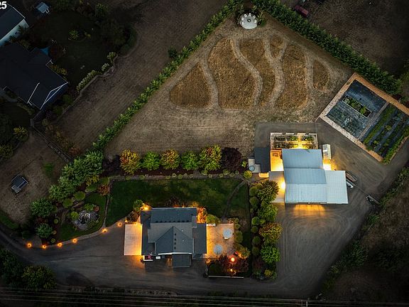 This one of kind small acreage property sits on 2 flat acres and offers one of the most beautiful esthetics you will see. Enjoy the lush irrigated landscaping, mature garden with a wide variety of fruit and vegetables, a functional field perfect for sports or activities, a one of kind shop and a beautifully reimagined residence. The 4 bedroom homes lives like new and features custom upgrades only found here. The spacious kitchen overlooks the stunning yard and comes with new appliances, a walk in pantry, new custom cabinets, custom range hood and new counter to ceiling backsplash tile. The inviting living room enjoys a custom fireplace facade and a wall of windows that overlook the expansive stamped concrete patio equipped with an outdoor kitchen, covered area with infrared heaters, a fire pit and ample space for entertaining. The upper level features 3 spacious spare bedrooms, a large bonus room with custom builtin bunk beds and a stunning primary ensuite. All bedrooms enjoy new high end carpet. The primary comes with vaulted ceilings, a spacious bathroom with soaking tub, water closet and a huge walk in closet with custom California closet package. The state of the art 2882 sqft shop is equipped with 100 amps of power, water, a mezzanine perfect for an office, multiple rooms and more. Raise chickens with the chicken coop, grow fresh produce in the garden, park/store your RV or boat, rest easy with the whole house/shop generator and create life long memories exploring the property. Only minutes away from the best of McMinnville, properties like this don't come up very often.