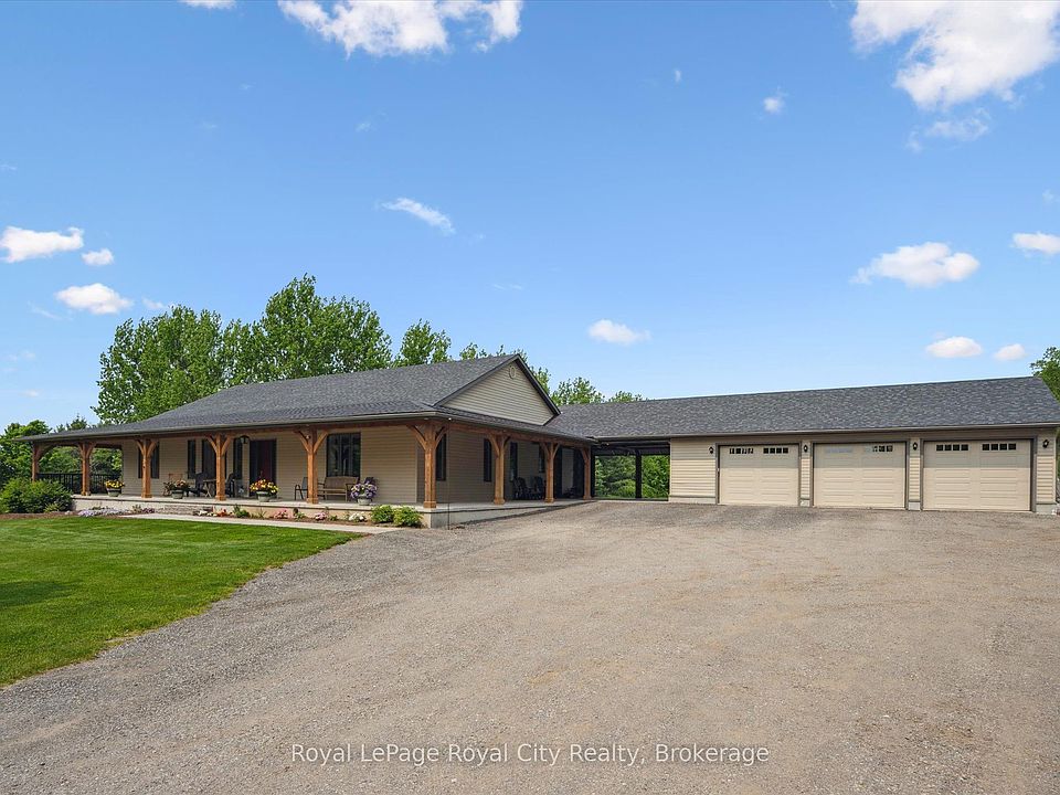 Welcome to a rare opportunity to own an impeccably designed bungalow that combines elegance, durability, and lifestyle in one extraordinary package. This sprawling 3,000 sq. ft. home is nestled on just under 2 acres of private, manicured land, offering both the peace of rural living and the sophistication of high-end construction. Built with energy-efficient and ultra-durable Insulated Concrete Form (ICF) wall construction, this home offers unmatched insulation, soundproofing, and structural strength. Step onto the stunning timber-framed wrap-around porch, where rustic craftsmanship and architectural detail make a bold first impression.Inside, you're greeted with 10-foot ceilings that amplify the natural light and sense of space throughout the main floor. The open-concept layout is ideal for entertaining or simply enjoying the spaciousness of your surroundings. At the heart of the home lies a chefs kitchen that truly delivers - complete with high-end appliances, an oversized island, and an enormous walk-in pantry that could double as a prep kitchen. The main floor features 3 generous bedrooms, each with its own private ensuite bathroom, providing ultimate comfort and privacy for family and guests alike. The primary bedroom is a serene retreat, with luxurious 5pc bathroom, sitting area and walk-in closet.The fully finished basement expands your living space significantly, offering limitless options for big-screen theatre, home office, fitness, or multi-generational living.Step outside to your backyard paradise, where you'll find a saltwater in-ground pool with patio and plenty of space for lounging, grilling, or hosting summer gatherings. The expansive yard offers room for kids to play, pets to roam, or future additions like a workshop or garden suite.Located just minutes from town amenities but far enough to enjoy privacy and nature, this one-of-a-kind bungalow offers the perfect blend of modern luxury and timeless craftsmanship.