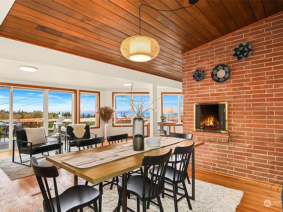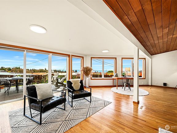 Wow! Now that's a VIEW! Olympic Manor is coveted in the city for exactly this reason: glorious views of the Sound, Olympic Mountains, & the Edmonds / Kingston ferry. This level entry MCM home provides simple living with today's conveniences. 3 bedrooms / 1.75 bathrooms includes generously sized primary suite with light filled west facing windows. Updated kitchen with ample space to whip up your favorite cuisine. Dining space spills out to the backyard view deck & yard with raised planting beds. Living room with vaulted ceilings and wood burning fireplace. 1 car garage + off street parking and storage. So much to love in an idyllic neighborhood close to schools & amenities with bus lines 2 blocks away. Envision your future in Olympic Manor!