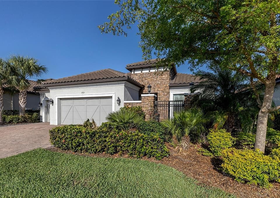 Gorgeous and meticulously maintained 3 bedroom, 3 bath, plus den and 3 car garage home offering an open floor plan featuring a Chef's kitchen with large island, quartz countertops, Gas cooktop, wine refrigerator, walk in pantry and stainless-steel appliances. A wall of sliding doors creates an inviting indoor/outdoor living experience. The highlight of the expanded lanai is an amazing low maintenance zen-like water feature with waterfall surrounded by a beautiful botanical garden oasis offering privacy in a serene setting (It is the perfect option for anyone wanting a water feature without the maintenance of a swimming pool). Also featured in the lanai area is a custom outdoor kitchen, gas fireplace, 24 x 24 porcelain tile floors with waterproof grout and remote-controlled Kevlar hurricane screens to protect the area during inclement weather. Additional highlights/upgrades include the bonus room which is perfect as a den/library/office , a generously sized owner’s suite with spa-like bath featuring a double sink vanity, large walk-in shower and custom designed walk-in closet along with two guest bedrooms; one with a bath ensuite and the other with a queen-sized Murphy bed that converts to the perfect area for an office. A laundry room with an abundance of cabinetry and the 3-car climate-controlled garage with epoxy floors complete this absolutely incredible home. Also included: a 14,000 BTU air conditioner in the garage, AQUASANA Simply Soft Whole House Descaler, AQUASANA Whole House Water Filter System, Plantation Shutters, premium lighting fixtures and ceiling fans. Cobblestone is a resort style community featuring 180 homes on 70 acres and an outstanding Clubhouse, pool, fitness center, hot tub, fire pit, Pickleball and bocce courts, dog park and playground. Across the street from an entrance to the Legacy Trail that offers 18.5 miles of safe bike and walking trails. Near Siesta Key, one of Florida’s top-rated beaches and many great shops and restaurants. This incredible home will not disappoint it is Florida living at its best!