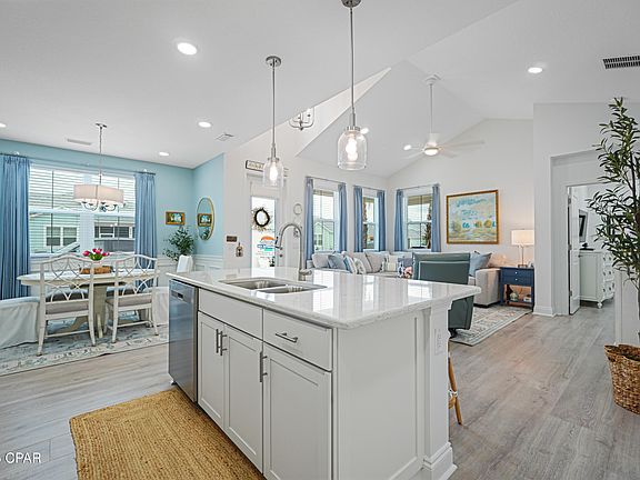 Welcome to a slice of paradise in Latitude Margaritaville Watersound just 7 miles from the sugar white sands of Panama City Beach. This highly sought after and upgraded Dreamsicle model is one of the largest floorplans and offers 2 bedrooms, 2 full baths and a versatile den/flex space- perfect for a home office or creative retreat. Located in phase 6bc, just steps from Flip Flop Square featuring a tiki hut gathering space and grilling area, the gathering hub of this section. This home embraces the laid-back lifestyle and vibrant community spirit Margaritaville is known for.