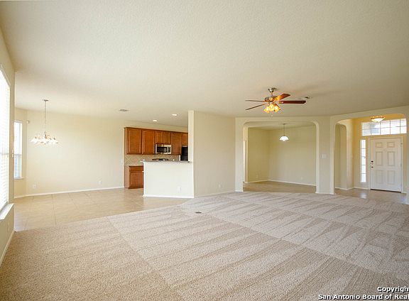 NEW CARPET AND FRESH PAINT!! Great curb appeal and covered entry usher you into this wonderful single story. Open floor plan with abundant natural light, high ceilings and neutral colors. A generous family room features art niche walls and is open to the kitchen. Formal dining space for entertaining. Easy function kitchen w/ smooth cooktop, walk-in pantry and fridge included. Roomy master suite w/ dual vanities, garden tub and oversized closet. Large patio and ample space for backyard fun.