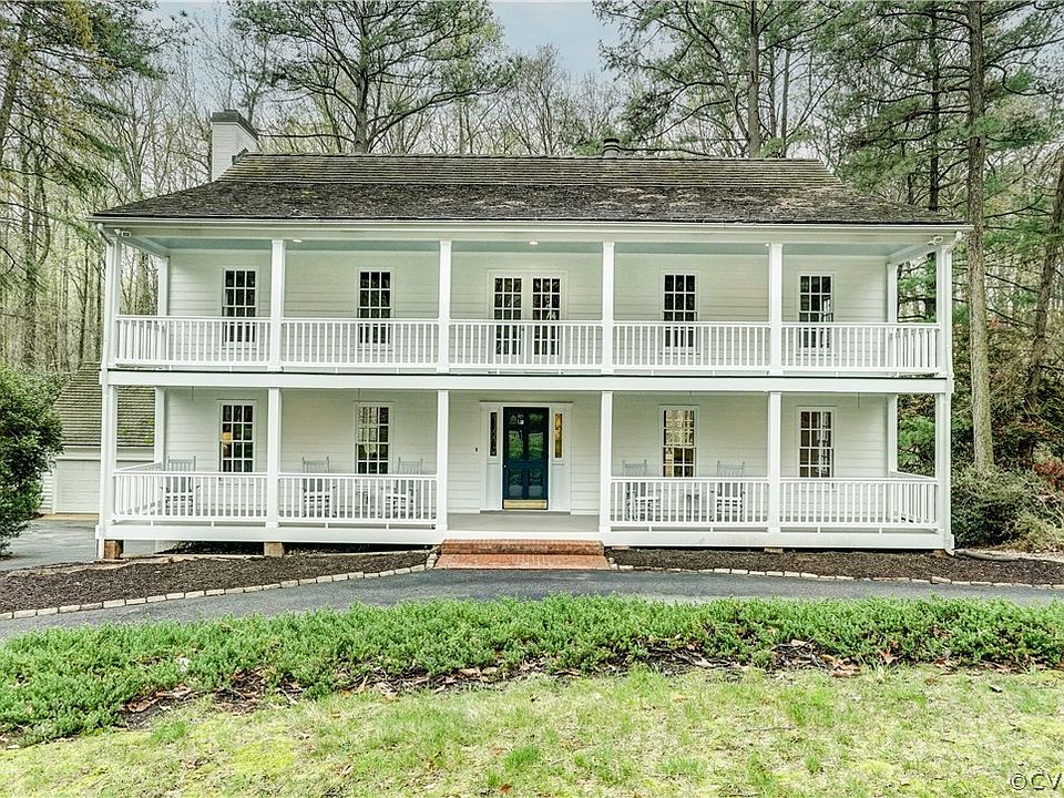 Dreaming of a southern style home with a two-story porch? Welcome to this enchanting home in Countryside on nearly an acre lot that backs up to the Countryside Nature Preserve for complete rear privacy. Socialize with neighbors and friends on your porch with its haint blue ceiling and leaded glass sidelights. A detached double garage with walk-up storage offers future possibilities for a guest suite, home office or pool house for the pool you can build in the huge flat backyard. The classic colonial floor plan features a two-story foyer with turned staircase to the upper balcony with its French doors to the upper porch. Tall oversized original windows with thick mullions, all hardwood flooring on both levels and the southern exposure in the back offers tremendous potential. You'll love the huge family room with its beautiful wood-burning fireplace. The dining room is square and ideal for a round table. The kitchen features a large bay window that floods the room with light from its southern exposure. The adjacent cozy breakfast room features a corner wood-burning fireplace and French door to the rear deck. The second floor offers a primary suite, three large bedrooms and a hall bath. The walk-out daylight basement has a huge recreation room, wood-burning fireplace and picture window to let the southern sunshine in. A kitchenette with abundant cabinetry and sink plus a new full bath with shower offers your guests private space and private zero entry when they're visiting. New ceramic tile floor in the large laundry room. A large unfinished space of about 400 SF would make an ideal gym. A Hendricks tile roof (2012), Hardie-plank siding, new composite porches, deck and vinyl railings, new full bath in the basement and all new interior paint on ceilings, walls and trim makes moving in a breeze. The kitchen and baths are in original cosmetic condition. Priced well below the assessed value of $976,000, there's lots of equity upside to renovate with your own selections. Bike through connecting neighborhoods to U of R.
