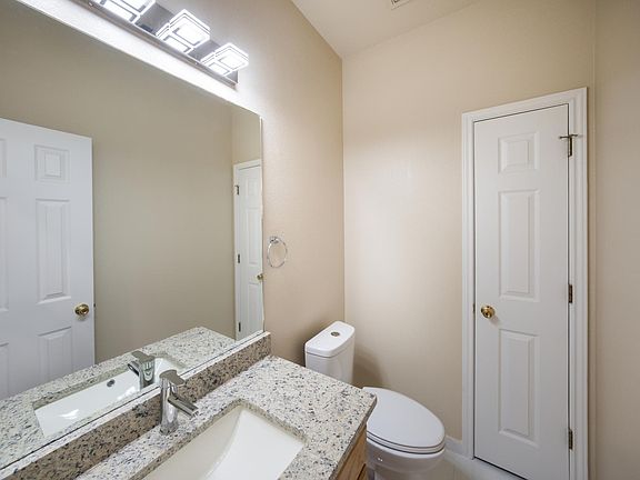 Remodeled, this is a very nice 3 BR / 2.5 BA home in Sonoma Ranch with high ceilings and an open floorplan. The kitchen has granite counter tops and Stainless Steel undermount sinks, energy efficient appliances. Entry and the Kitchen have nice tiles and through house energy efficient LED lighting. All bathroom vanities have updated granite counter tops and modern LED lighting and new faucets. The primary bedroom is split from the other two bedrooms and offers a walk-in closet, a garden bath and separate shower with new frameless shower door. New Toilets throughout the house. The utility room is large and plenty of room besides the washer & dryer connections. Attached two car garage with remote controlled opener. Relax on the covered patio overlooking the huge backyard that is perfect for a family gathering or children to play. The Arbor @ Sonoma Ranch offers neighborhood amenities, too.