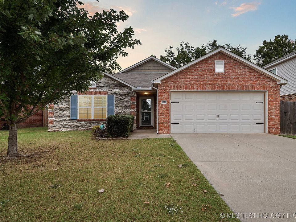 Beautilfully maintained home in the desirable Bixby Landing. Stunning Hardwood floors, granite counters, subway tile backsplash, bullnose corners, large kitchen open to light, open bright family room with room for large furniture! Big master with luxury bath & large walk-in closet. 2"faux wood blinds. Covered patio. Landscaped, 9' ceilings, tile. The neighborhood features a park and walking trail. Close to everything.