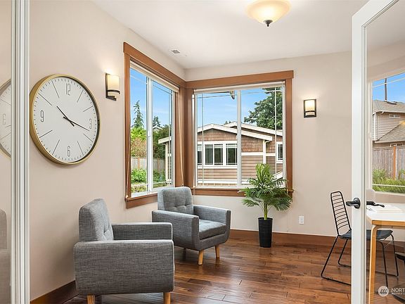 This home has it all, nestled down a private drive above the Edmonds Bowl. Light & bright, the main floor is thoughtfully designed with everything on one level including a den, spacious primary bedroom & bathroom featuring a soaking tub & walk-in closet. A large, modern kitchen w/ slab granite countertop & skylights ready for your next holiday gathering/dinner party. Open concept dining area flows to private deck offering a peaceful retreat. The daylight basement offers a spacious rec room, providing ample space for entertainment/ relaxation, additional bedrooms, full bathroom, and generous storage space. Located next to Yost Park and minutes from downtown Edmonds shops, dining, and the beach. Welcome home!