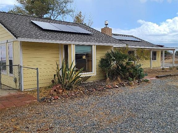 Bedrooms & Bathrooms: This spacious home features 3 bedrooms and 2 bathrooms, plus a converted garage that can serve as a family room or a 4th bedroom, providing ample space for everyone. Outdoor Enjoyment: Enjoy your morning coffee or take in the breathtaking views from the inviting front covered porch. Cozy Family Room: The family room, equipped with an efficient wood-burning stove, ensures warmth throughout the home, making it a cozy retreat in any season. Eco-Friendly Living: The property includes solar energy systems, offering both sustainability and savings on utility bills. Open Concept Design: The family room seamlessly connects to the dining area and kitchen bar, making it an ideal space for entertaining friends and family. The kitchen boasts refinished cabinets, Corian countertops, and a window that overlooks the stunning valley, allowing for natural light and beautiful views. Livestock Ready: The property features electric entrance gate, RV hook-ups, cross fencing, new septic system, perfect for livestock, along with a charming red barn that enhances the ranch-style appeal. Enjoy the spacious backyard with panoramic views of the valley and the sparkling city lights at night. This property holds immense potential and offers endless opportunities for your dream lifestyle. This property has so much protentional and endless opportunity. Don’t miss the chance to make this retreat your own!