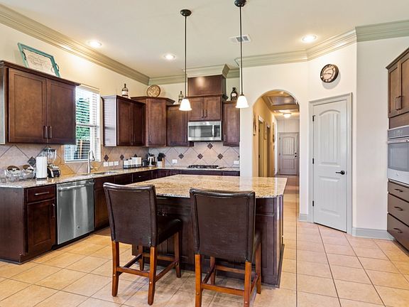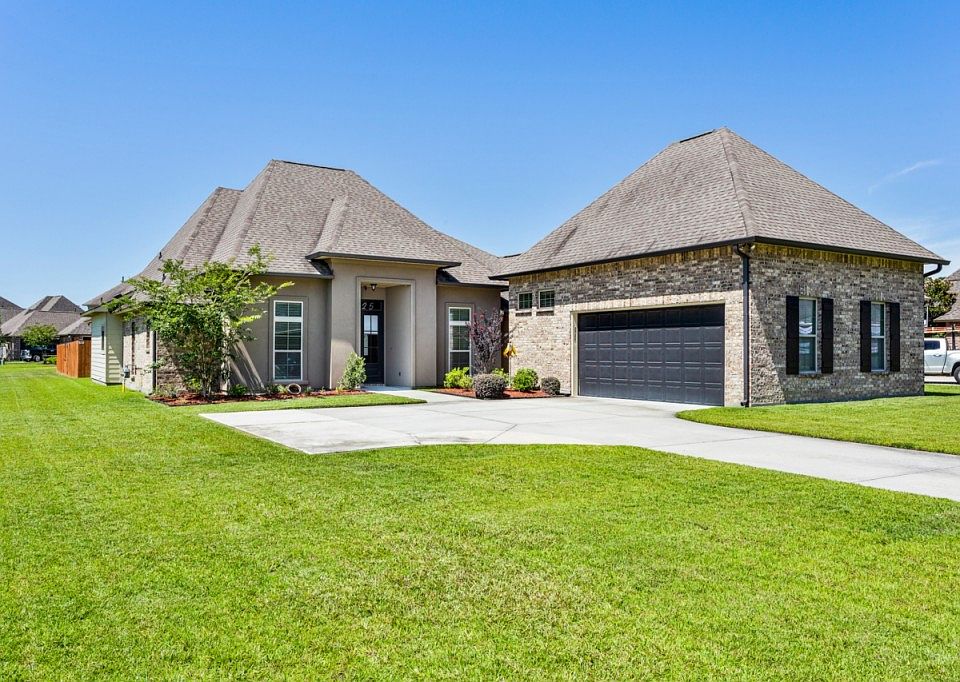 Fantastic 4 bedrooms, 3 bathrooms plus a bonus room above the garage on a corner lot! Loaded with amenities, such as custom built cabinets, recessed lighting, stained cypress post, wood floors in the family room, wood blinds, and granite countertops. A large family room with gas log fireplace and large windows offers great views to the exterior. A spacious gourmet kitchen with custom built cabinets, gas range, convection oven and a spacious walk-in pantry. The luxury master suite provides dual vanities, two huge walk-in closets, water closet, with a separate tub and shower. The remaining three bedrooms are well-sized and all offer walk-in-closets. The rear porch is very spacious leading to a large fenced backyard that has a 10 X 12 Cook Custom Built Shed. The two car garage includes a storage area and wide driveway for plenty of parking! Floodzone X ; Swann security cameras (coverage of the entire property); Exterior home lighting; Live Oak schools