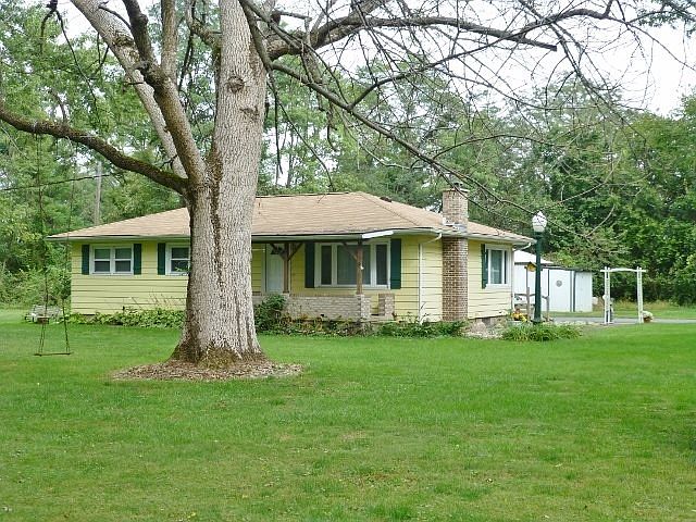 Private, partially wooded 2 acre lot is the perfect setting for your next home. Updated in the past few years are the HVAC, windows, carpet, and roof. Some new interior trim and doors. All appliances stay in this estate sale home with three bedrooms and partially finished basement. Two separate laundry hook ups including one in the basement with additional sink and shower. Large rec room on lower level has barn feel with decor and pool table with all equipment stays. Plenty of room for your expansive workshop in the pole building and 2 car detached garage with electricity and wood furnace. Easy to show any time. Call to schedule your showing today!