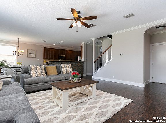 Immaculate & meticulously cared for two story home on a greenbelt with a huge backyard! Open floor plan with all laminate downstairs, tall baseboards, crown molding, stainless steel appliances, granite counter tops. Beautiful master & half bathroom with stone stacked walls, oil rubbed bronze fixtures. Huge game room upstairs along with all the bedrooms and the laundry room- perfect for entertaining! All the bedrooms are spacious. Tons of added storage in the garage as well as a storage shed in the backyard.