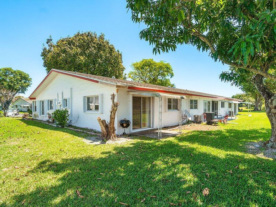 PEACEFUL WATERFRONT VILLA IN PRESTIGIOUS LAUDERDALE WEST - 55+ COMMUNITY.Welcome to serenity in the heart of Lauderdale West! This spacious 2-bedroom, 2-bath with open den/flex room corner unit villa offers 1,114 sq ft of comfortable living space, tranquil waterfront views, and two dedicated parking spaces right at your doorstep. The home features a brand new water heater, hurricane shutters for added protection, and is surrounded by lush landscaping with large, mature fruit trees that create a beautiful, tropical atmosphere.Enjoy a low-maintenance lifestyle with HOA-covered amenities including roof repair and replacement, exterior painting, cable TV, Wi-Fi, and full groundskeeping. The community also boasts full reserves, offering peace of mind and financial stability for homeowners. A free community shuttle picks you up right at your door and takes you to nearby shopping, dining, and daily errands.