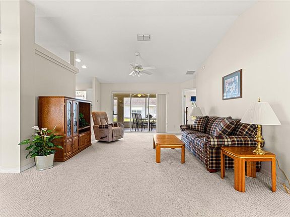 Be sure to preview this 2003 yr built "Oleander" model home featuring 3 BR 2BA and was built by one of Ocala's premier builders Triple Crown Homes. Over 1,700 sq ft of living area. Open Floor plan. The Living Room, Dining area and Kitchen are all open to each other with glass slider doors opening into the screened Lanai that includes an access door to the open patio outside. The kitchen offers plenty of cabinets along with plenty of prep area and is in close proximity to the Laundry room and Guest BR #1 which has two closets and was used as an office. The Primary Bedroom features a walk in closet, vanity sink and a private enclosed tiled shower. The 2nd Guest Bedroom also features a walk in closet and is in close proximity to the guest bath. Folks, if you are looking for a clean ready to move into home that is perfectly situated on a corner lot this property is for you. The two car garage includes an extra 8 ft along with a side access door. The Roof was replaced 2023. The AC replaced 2017. The HOA ($186 monthly) includes water, sewer and trash removal along with the use of a very impressive clubhouse, huge swimming pool, activities to meet new friends and neighbors, fitness room and a Bowling Alley. Marion Landing allows golf carts and has a super SW Ocala location to hospital, professional offices, restaurants and shopping. Take care everyone and we hope to see you soon.