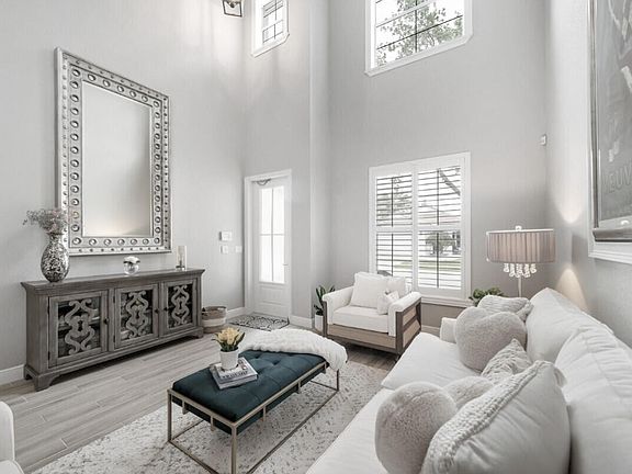 This 5-bedroom, 3-bath home with oversized Florida room offers more than 2800 sq. ft. of living space just steps away from the clubhouse and gigantic community pool.House features boasting volume ceilings throughout and soaring two-story living room. The gourmet kitchen features wood cabinetry, stainless steel appliances and spacious walk-in pantry. Massive kitchen island with top quality natural quartzite countertops is perfect for gathering and entertaining! The oversized owner's suite offers tray ceilings, dual walk-in closets with custom built-ins. Master bath features soaking tub, spacious shower, marble bathroom vanity. This beautifully maintained home features brand new premium flooring downstairs. Updated air-conditioner, water heater, LG washer & dryer. Storm season ready with accordion shutters on all openings and a metal roof.