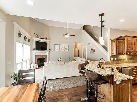 Just ONE mile from Milford State Park, this beautiful 2-story home with a fully finished basement presents 6 bedrooms, 4.5 bathrooms and 3 car attached garage. Spanning approximately 4,600+ sq ft, enjoy gatherings in the generously-sized living/dining areas graced by 2 wood burning fireplace, a Butler's pantry with wine cooler connecting the formal dining room to the kitchen, and a wet bar downstairs. Both entertainment spaces have doors which lead out to the rear patio and deck presenting the backyard which rests on 2 acres with an oversized playset. The kitchen has granite countertops, soft-close cabinets, stainless-steel appliances, a breakfast nook, and breakfast bar seating. Conveniently located only 3 miles from Ft Riley’s Parker Gate and 6 miles from one of Ft. Riley’s 24-hour access gates makes most on-post commutes under 15 minutes. There are NO SPECIAL TAXES and NO HOA! This home is empty and ready to move-in. Sellers are willing to work an early move-in contract during closing period!