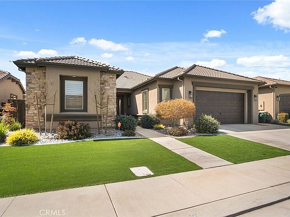 REIMAGINED! Beautiful single-level 3 bedroom 2-bathroom home located in sought after Villa Cordoba subdivision, Hilmar CA. 8727 San Remo Dr features many upgrades starting with the kitchen granite counter tops, kitchen island with beautiful apron sink, walk in pantry and custom colors on kitchen cabinets and all cabinets throughout the home. The spacious, single-level design offers excellent separation of space and a graceful floorplan with excellent flow for everyday living and entertaining. The common rooms include a combination of living and dining room with fireplace, high ceilings and large windows bringing in more natural light. Every window in this home has beautiful shutters that not only look stunning but provide additional privacy for you in your home. Additional features are 2 walk-in closets in master-bedroom, porcelain tile floors throughout home and carpet in all 3 bedrooms. Synthetic grass lays graciously on both the front and the back yards. Drip system is in place for live vegetation, plants and bushes in the front and backyard. The garage was not spared! It includes beautiful custom cabinets, epoxy floors, baseboards plus the walls have been textured and painted. This home also includes a tankless water heater, water softener and reverse osmosis system.