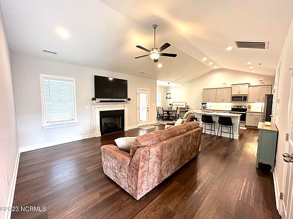 Welcome to this stunning three-bedroom, two-bath home, constructed in 2021 sitting on a sprawling acre of land. No city taxes! This home offers an open floor plan with LVP flooring and a cozy fireplace providing a perfect spot to unwind and enjoy the upcoming chilly evenings. Adjacent to the living area the kitchen offers granite countertops and sleek stainless steel appliances. Spacious master bedroom complete with trey ceilings and master bath with walk-in shower, soaking tub and his/her closet. Special features of this home are the upstairs bonus room and walk-in attic providing ample storage, 2 car garage and covered back porch.
