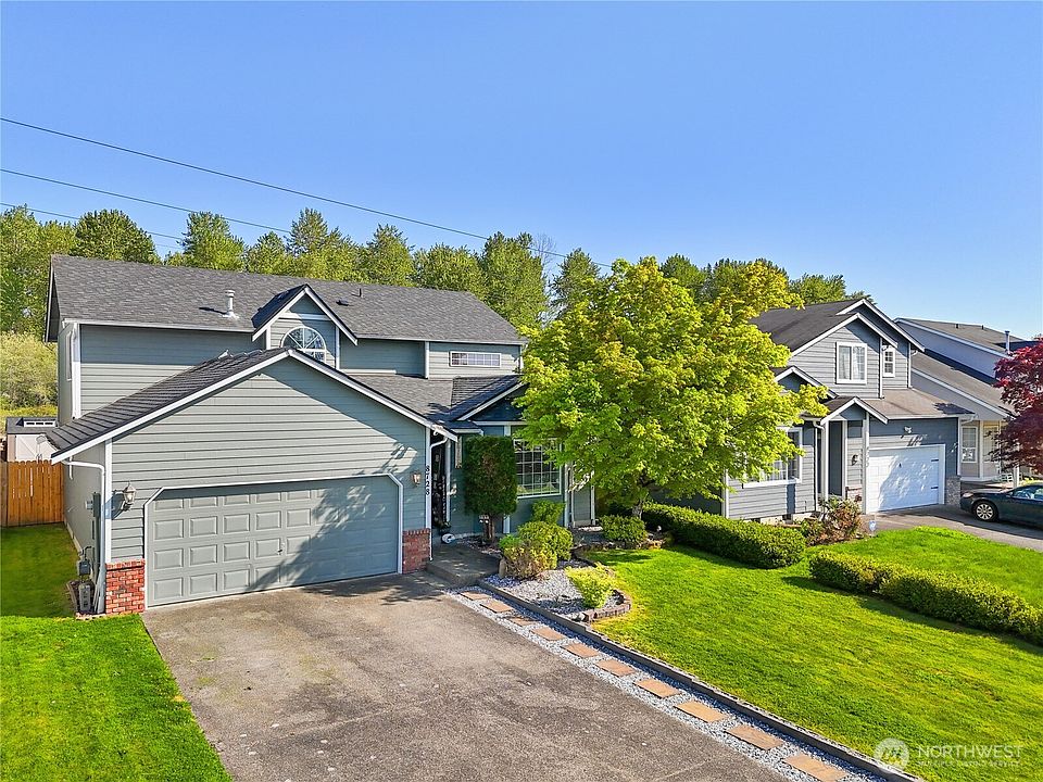 Welcome to 8728 136th St E, a stunning Puyallup home designed for comfort and style. Offering 4 bedrooms and 2.5 bathrooms, this residence boasts soaring vaulted ceilings, rich dark wood cabinets, granite countertops, and stainless steel appliances in a thoughtfully designed kitchen with multiple dining spaces. The primary suite features a full bathroom and walk-in closet for a true retreat. Step outside to a large covered patio overlooking a fully fenced backyard with garden shed, all backing to a serene greenbelt for privacy. Perfect for everyday living or entertaining, this home blends modern elegance with functional space in a peaceful setting.