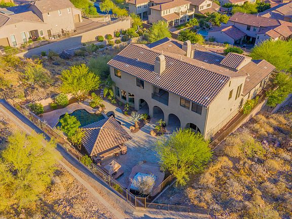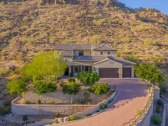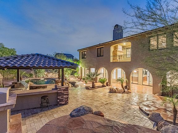 With a gorgeous mountain peak as a backdrop this spectacular hill top home is nestled on a premium oversized lot in the desirable gated community of Altamont in WestWing Mountain. Beautifully landscaped, paved and curved driveway gracefully leads you to the entrance of this stunning home. Once inside you'll immediately notice the old world charm that defines the space - from the arched doorways, brick accents, tiered ceilings and wood beams - this home is beautifully appointed. Step into the spectacular gourmet kitchen where you will find rich designer cabinets set against the perfect brick wall, lovely granite counters tops, oversized island with plenty of room for bar stools and high end stainless appliances. Fantastic breakfast nook situated in a curved space that is lined with windows