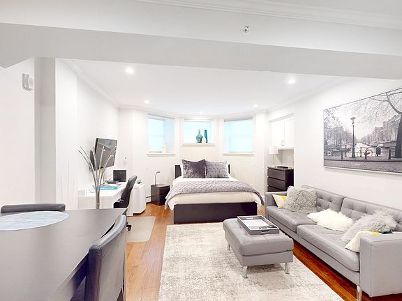 Charming Studio Apartment in the Heart of Boston 873 Beacon Street, Unit B1 Welcome to this beautifully designed FULLY FURNISHED studio apartment nestled in a quiet, sought-after neighborhood on Beacon Street. This thoughtfully planned home offers an exceptional blend of charm and efficient use of space, perfect for comfortable city living. Equipped with all the high end furnishings you see in the photos as well as a TV, outdoor vented AC, fully loaded kitchen with cups, plates, silverware, pots, pans, etc and all the toiletries you need. This unit also boasts its own thermostat to control the flow of the included heat. Step into a bright and spacious living area with high ceilings and a warm wooden floor finish that adds a touch of elegance. The open layout seamlessly connects to a modern kitchen featuring stainless steel appliances, including a refrigerator, designed to meet your everyday needs with style and functionality. Don't miss the opportunity to make this inviting studio your new home. Reach out to learn more and schedule your private tour today! This unit is being offered at $2400. Heat/hot water and all furnishings included in the rental price. 1st, last, full broker fee and $100 key change fee due at signing. Students and professionals welcome. Available 10/1. 3D tour available upon request.