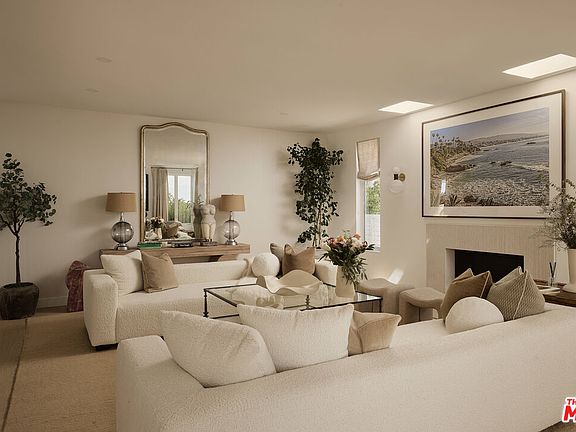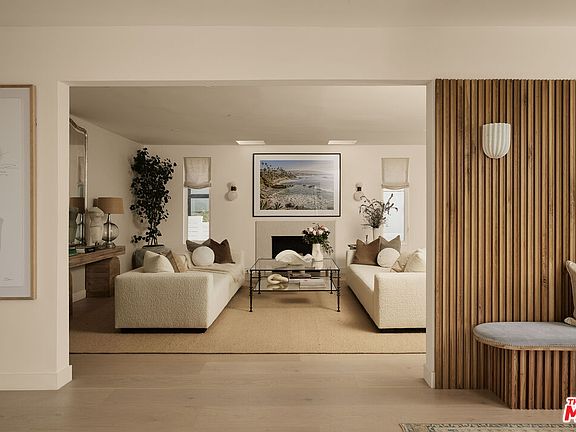 Perched at the highest point of Berkeley Street in Santa Monica, Casa Tramonto is more than a home - it's a story, an experience, and a retreat. From the moment you ascend the private driveway, a sense of calm takes over, carried by breathtaking views that capture both sunrise and sunset across the city, ocean, and mountains. Every detail of this reimagined estate speaks to thoughtful craftsmanship and timeless design. Local artisans built custom oak cabinetry and vanities throughout, paired with Kalista fixtures and an artful mix of natural stone, tile, and porcelain. Wide-plank white oak floors ground the interiors, while oversized oak doors with reeded glass and Rejuvenation hardware add character and warmth. Light floods through fully extendable glass doors, opening each room to balconies and breezes. Belgian linen dressings frame windows, and every bedroom offers a private moment among the trees. This home offers a highly functional layout with four bedrooms upstairs, one bedroom downstairs, and an additional office/den space perfect for work or a gym. The newly resurfaced exterior and refreshed landscaping bring the property into harmony with its setting, now surrounded by 60 mature trees and enhanced by thoughtfully updated lighting. The backyard is an invitation to linger - swim in the updated pool, unwind by the fountain, or simply soak in the serenity. Behind the beauty, modern systems provide peace of mind: two tankless water heaters, dual-zone HVAC, updated plumbing and electrical, and two laundry spaces. Designed by Lizabeth K. McGraw of Tumbleweed & Dandelion and built by American Valley Builders, Casa Tramonto is a rare work of art.