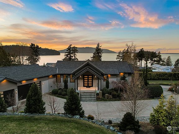 Endless sunsets will never grow old from this PNW Modern Masterpiece capturing 180 degree views of Chuckanut Bay & the San Juan Islands. Style, substance, & superior craftsmanship only begin to describe this generously appointed home located close to Fairhaven, trails, and only a 5 minute walk to a private beach with boat storage. Over 4,400 sq ft with walls of windows, plus nearly 1,000 square feet of heated covered deck and patio, and an oversized 3 car garage. Main level owners suite with spa like bath and two additional full suites, all with bay views. Modern & refined with attention to detail, clean lines, stunning finishes, and 2/3 acre of impeccable landscaping elevates to resort like living. This home is definitely one not to miss!!