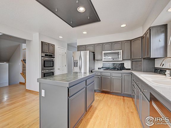 Beautifully appointed home in the desirable Northmoor Estates! Walking distance to Birch Elementary. This well-maintained home features numerous special touches & upgrades throughout. The front patio is large and inviting perfect for morning coffee and neighborhood gatherings. Open the door to stunning uniqueness as hardwood floors flow into the gourmet kitchen. The kitchen features all appliances, island with lots of cabinet space, updated lighting and eat in nook. Large dining room and living room with vaulted ceilings offer expansive entertaining space and open to a deck overlooking the yard. The lower level features a large family room that opens to a spacious yard. Laundry room and access to the garage. The garden level basement features a spacious rec room and HUGE room with full bath. Upstairs you will find the primary suite with attached 5 pc. bathroom and walk in closet. The other 2 rooms access a shared bath. The backyard is fully fenced lush, green yard & large shed for additional storage. Unwind & enjoy peace & quiet on the large back deck, perfect for savoring your summer evenings. The property boasts an oversized 3-car garage with over 820 sf ft, providing ample space for parking and storage. Improvements newer roof, A/C Washer & Dryer, Exterior and interior paint. Easy access to the heart of Broomfield, parks and open space.