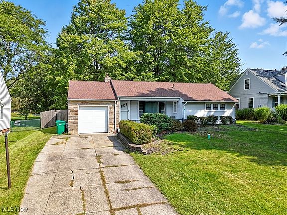 Delightful ranch located in Seven Hills featuring numerous enhancements! A spacious front porch welcomes you, leading directly into the expansive living room, which offers a fireplace and highlights the hardwood floors that span the main level. French doors invite you onto the large back deck that overlooks the recently fenced . 55-acre property. Central to the home, the kitchen boasts fresh paint and revamped countertops. The modern design aesthetic flows into both bedrooms, each with distinctive feature walls. The bathroom, renovated in 2019, includes heated floors! In the lower level, you'll discover a vast finished recreation room adorned with newer wood laminate flooring (2020), along with a laundry space that provides ample storage. Additional updates include a high-quality furnace and a/c system (2020), hot water tank 10/2021. Furthermore, it offers convenient access to I-77 and numerous shopping options on Broadview Rd, located just a few minutes away!