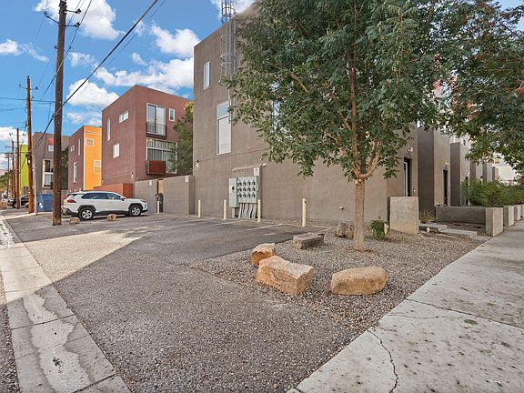 Perfect urban townhome in a gated Downtown community with mature shade trees! This 3-story home features refrigerated air, bamboo flooring, and courtyard views from every level. Main floor offers a cozy living area and half bath. The 2nd level includes a gourmet kitchen with stainless steel appliances, granite countertops, and flex space ideal for dining, office, or guest area. The 3rd floor owner's suite features a balcony, two closets, washer/dryer, and full bath with jetted tub. Prime location near Old Town, Downtown, the Zoo, Tingley Beach, breweries, restaurants, nightlife, UNM, CNM, I-25, and the airport.