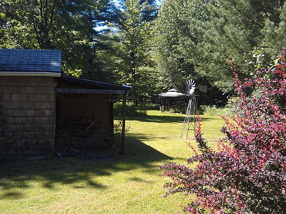 Huge yard, cute home, storage and convenience. This pretty home is easy to miss as you're driving by since it's set back from the road. Inside you'll find a nice sunny living space with retro kitchen, pellet stove, and 1st floor and 2nd floor bedrooms. The basement is the size of a home itself with 10 foot ceilings. The yard is huge with plenty of space for gardens, sports and privacy. Home needs updating.