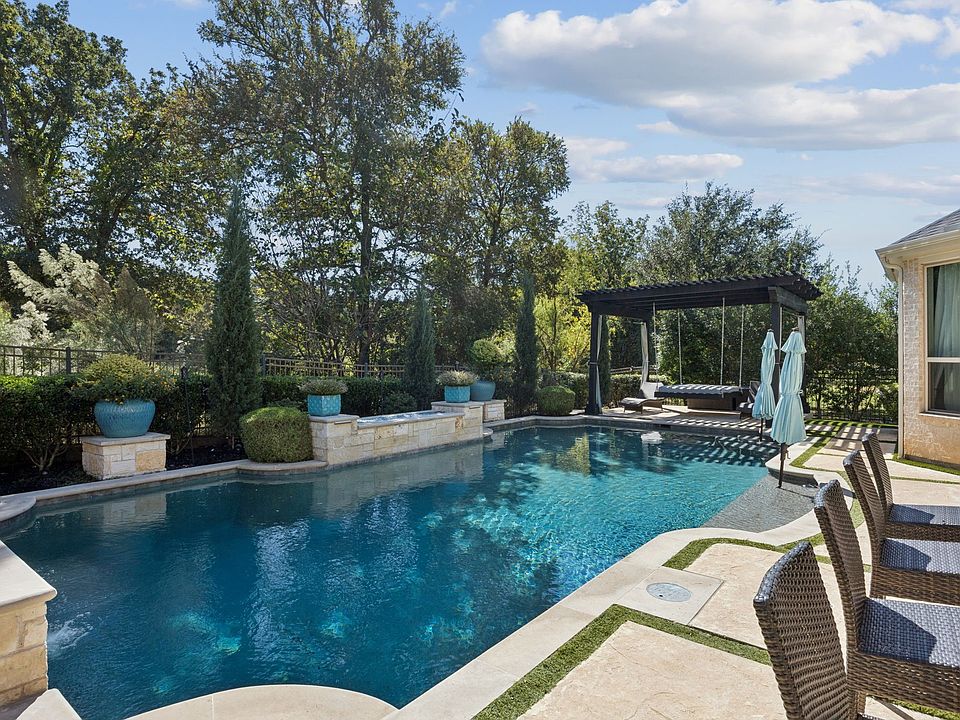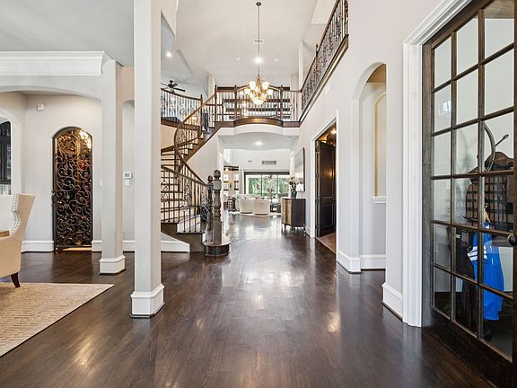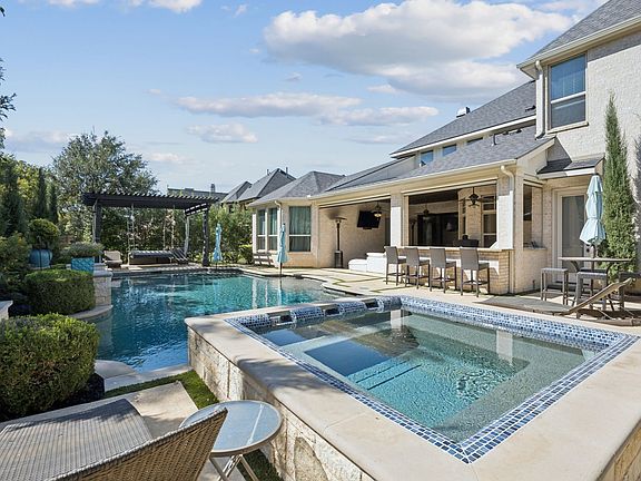Luxury Living on the Golf Course – A Home Designed to Impress! Welcome to 8730 Canyon Crossing, an exceptional golf course estate combining modern sophistication with resort-style amenities. A three-car garage with a porte cochere, epoxy flooring, and a professional lift system set the tone for the quality craftsmanship throughout. Inside, the formal dining room shines under a modern chandelier and features a custom wine cellar—perfect for entertaining. The chef’s kitchen offers every convenience: a sink filler, warming drawer, KitchenAid refrigerator, double ovens, and an oversized butler’s pantry with elegant glass cabinetry. Enjoy casual meals in the breakfast nook beneath a tray ceiling, or gather in the family room with sliding glass doors that open to the ultimate backyard oasis. The main level also includes a guest suite, media room with screen and projector (both to remain), and a mud room with a bonus pool bath. The laundry room features a dog washing station and extensive cabinetry. Upstairs, find a flexible gym or secondary primary suite with dual vanities, full shower, and dual closets—along with spacious additional bedrooms, a game room with a wet bar and a second laundry room (with machines to remain). Step outside to your private resort: a Claffey pool with 10-person spa, fire features, LED lighting, built-in sound system, and gas grill with concrete bar counter. Relax under the pergola with porch swing, enjoy the outdoor fireplace, and unwind on the turfed patio with motorized retractable screens. The 3 car garage includes epoxy flooring and a dedicated circuit for freezer or refrigerator. Every detail reflects thoughtful design and refined living. Lantana residents enjoy access to top-rated schools, scenic walking trails, resort-style pools, new pickleball courts, amenity centers, and more.8730 Canyon Crossing is not just a home—it’s a lifestyle.