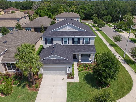 Welcome to this pristine 4br/3.5ba/2cg + office + bonus loft home with all the character and charm you could ask for! Built in 2014 by Taylor Morrison Homes, this practically new two story home sits on a great corner lot and offers over 2620SF of living space. This exceptional home shows like a model and features wood floors, arched doorways, high ceilings, an elegant formal dining room, and an impressive chef's kitchen! The upgraded kitchen boasts granite countertops, 42" cabinetry, stainless steel appliances, a center island with breakfast bar seating, and a pantry. The kitchen overlooks a sunny breakfast nook and spacious family room, allowing plenty of family interaction and entertaining. The first floor master retreat showcases his & hers walk-in closets and a luxurious en suite bath with oversized soaker tub and double vanity. An enormous second floor bonus loft offers wonderful additional flex space for you and your family. French doors lead to an office/den with an en suite bath. This space could easily be used as a bedroom or game room. A sprawling screened porch is ideal for entertaining and overlooks the pristine surrounding green space. Additional features include; hurricane panels, irrigation system, and a first floor laundry room. Located within minutes are major road ways, world class restaurants, shopping malls, entertainment, schools, parks, golfing, & a very short commute to downtown Tampa & Macdill AFB. This home is immaculate- don't miss it!