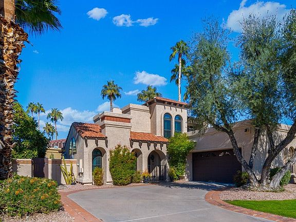 McCormick Ranch 3 bd/2.5 ba is a gem...from its large open kitchen to the main floor primary suite with walk-in shower and patio access to the home's larger private backyard sanctuary lushly lined w/pavers and mature landscape. Smartly remodeled: timeless design with contemporary comforts. Features: corner lot privacy, upgraded bamboo and porcelain tile flooring, wood shutters, new windows; kitchen showcases leathered-granite counters and island, solid walnut cabinetry and Viking appliances; and so much more. New Roof: Flat (2021) Tiled (2016). Newer HVAC. H20 Heater (2024). HOA includes water, front lawn maintenance, tennis/pickleball ct. with htd pool & spa just steps from your back gate. Prime Scottsdale location convenient to just about everything. Wonderful place to live and play! Close to fine dining/shopping/entertainment and short drive to spring training, Barrett Jackson/Arabian Horse show facilities, golf & much more. Truly a one of a kind property!