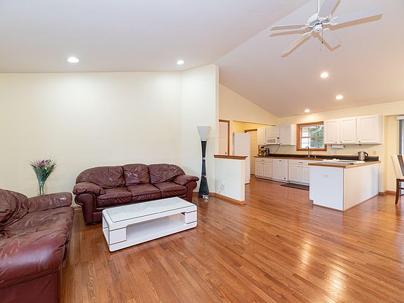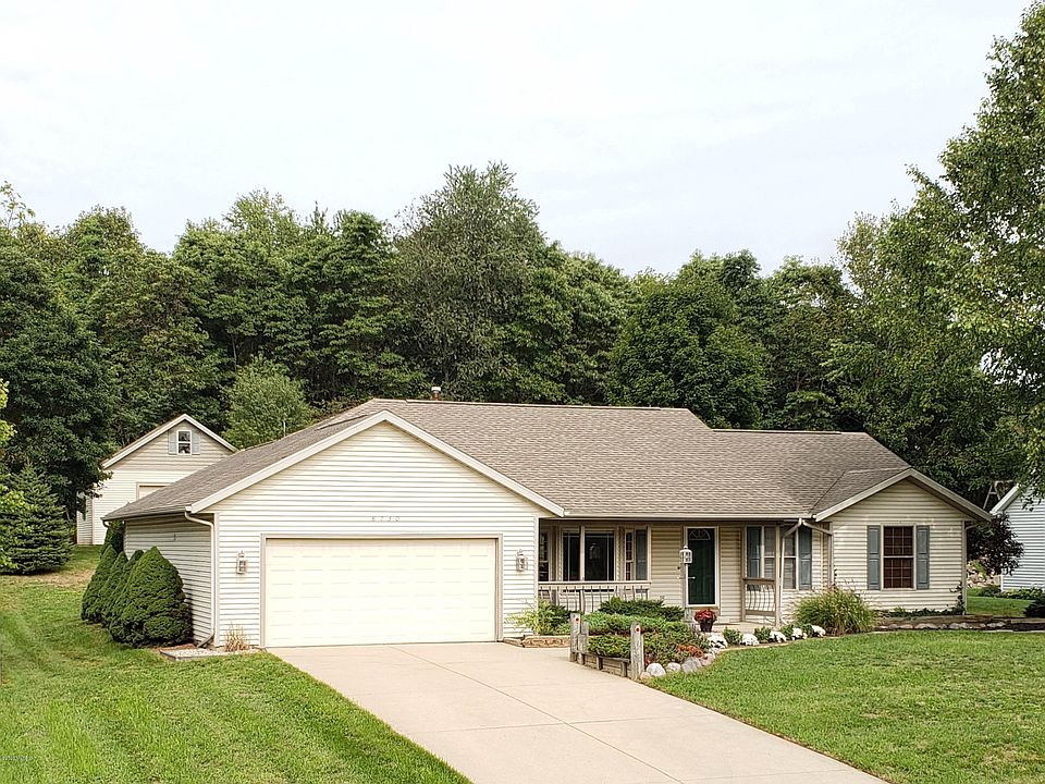Surrounded by lush woods and trails, this private community enjoys access to trails and an excellent location. Come see this hidden gem, 3-bedroom (if you don't count the 4th bonus basement room), 2 full bath ranch home on almost half an acre. Flanked all around by quality landscaping, including perennials, specialty and privacy trees, unique bushes and shrubs and more, this home is gorgeous! Inside, you'll find shiny oak wood floors, fresh paint throughout, pristine carpet in bedrooms/basement. Step to the back on the freshly painted deck and you'll catch a glimpse of the unassuming but deceptively large 20'x24' pole barn/workshop with a bonus finished loft space (secret stairs in back). Top all this off with a 3-car garage with two doors. You've really got to see this one to believe it.