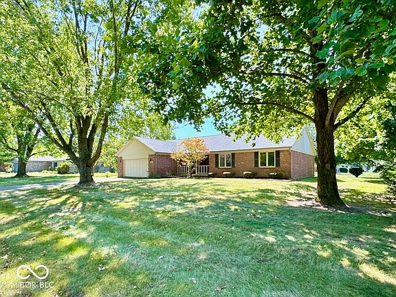 Discover this charming 4-bedroom, 2 full bath brick home with 1,661 square feet of comfortable living space in desirable Hill Valley Estates. Situated on nearly half an acre, this property offers both character and convenience. From the welcoming covered front porch to the mature trees that frame the yard, curb appeal abounds. Inside, the living room features a cozy gas fireplace, perfect for gatherings. The primary suite includes two spacious walk-in closets, giving you the storage you've always wanted, and a primary bathroom. Step outside to enjoy a large covered back deck, ideal for entertaining or relaxing. You'll also love the adorable storage barn with its own front porch, adding charm and extra functionality. A two-car garage completes the package. Easy access to shopping, dining, and everyday conveniences, as well as I-69. This home blends comfort, character, and location in one perfect package.