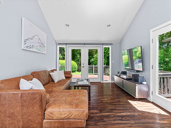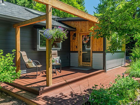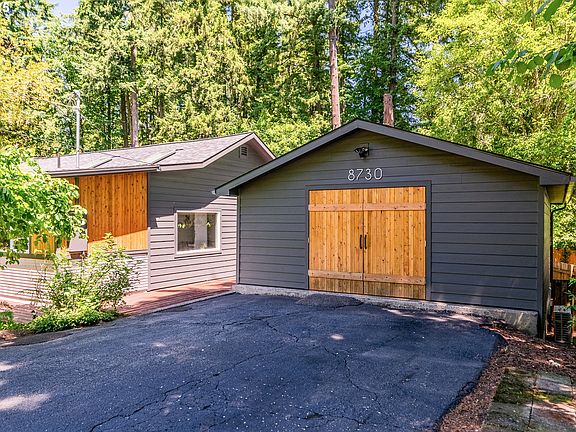 Tucked into a quiet, tree-lined setting, this beautifully updated 3-bed, 2-bath home offers the tranquility of a private nature preserve, just minutes from shopping, dining, and everyday essentials. Set on an extra-large lot that backs to a green space with a private gate, the property provides rare privacy, lush landscaping, and a strong connection to the outdoors. Enjoy birdsong and butterflies among mature trees including Japanese maple, quince, and apple—both quince and apple trees are fruit-producing. The expansive backyard features raised garden beds, raspberry and blueberry bushes, a large lawn, flagstone patio (2021), and a freshly painted deck (2025). An 8x6 greenhouse with automated venting windows supports year-round gardening. Inside, vaulted ceilings, skylights, and an open floor plan fill the home with natural light. The kitchen includes stainless steel appliances, an island, tile backsplash, generous storage, and a dining area. Two bedrooms and a full bath with a skylight, double vanity, and oversized tub/shower complete the main level. Downstairs, the private primary suite includes a step-in tiled shower, laundry/utility room, office nook, and backyard access. Plumbing for a kitchenette makes this level perfect as a guest suite, separate living space, or potential rental. The detached garage has been converted into a finished flex space with heat, A/C, new windows/doors, and a 100-amp/240-volt subpanel with a 60-amp 240-volt circuit (previously used for a pottery kiln). Ideal for a creative studio, gym, or workshop. A full-footprint storage room below the garage offers generous bonus space. Major updates in 2022: Hardie Plank siding, exterior paint, roof, gutters, and high-efficiency heat pump. A rare blend of thoughtful upgrades, indoor-outdoor living, and natural beauty - this home is a true urban retreat.