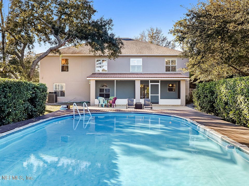This spacious home is perfectly placed on a 1/2 acre homesite. Lower level features a large bedroom with a full bathroom, formal living room with built-ins and formal dining room. An open concept kitchen, dining area and family room look out over an amazing backyard retreat featuring a screened lanai, patio, and inground pool where you can enjoy the privacy of the landscaped, fenced in yard. The kitchen features a center island, stainless steel appliances, granite countertops, under cabinet LED lighting and a large walk-in pantry. Second level includes a master suite with his and hers walk-in closets and private bath with walk-in shower and soaking tub as well 4 additional bedrooms and a large family room. There is no shortage of storage and closet space! Three car garage and storage Shed!