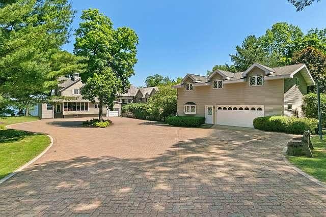 Amazing opportunity to own 1.5 acres with mature trees and 100 ft. of sandy beach frontage on Powers Lake. Home has been in the family for over 40 years and has so much to offer. Well maintained newer roof and air conditioner. Spacious inside and out. Sleeps up to 22 people. Guest house and two story 2 car garage for all the toys. Level back yard with lots of entertaining space. Boat slips, out door patio, large 3 season room, large walk-in cooler, and large brick paver driveway able to accommdate many vehicles. Wonderful space to create long lasting memories.
