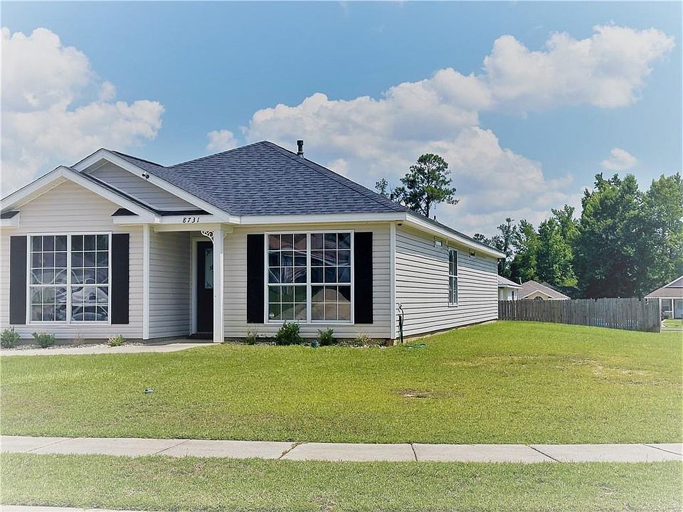 Can we say location! location! location! Rare opportunity for a 4 Bedroom cottage in Hamilton Bridges located in West Mobile next to Baker High School and minutes from the airport. Close to Coast Guard base, Schillinger road shopping hub with tons of dining out options as well as movie theaters! The popular open floorplan features a spacious kitchen overlooking the living/dining room and includes a breakfast bar. Kitchen has newer countertops, loads of cabinets, a pantry and includes all appliances......refrigerator, garbage disposal, range, microwave and dishwasher. The living room features a raised turtle back ceiling with an exterior door leading to a covered back porch and huge yard. Super spacious primary bedroom includes an en-suite bathroom with 2 separate walk- in closets, soaker tub with shower and double vanities. As per Seller, the following updates were completed in 2022.....*NEW roof * NEW HVAC *NEW LVP flooring installed throughout...NO carpet YAY!! * NEW light fixtures and ceiling fans in all rooms * NEW paint throughout *NEW garbage disposal and kitchen faucet * NEW blinds except for bedrooms which have curtains that can remain. Current termite bond. Prime location on a corner culdesac lot! This cutie is priced to sell so please come check us out...we are persuaded you will be so pleased that you did!!