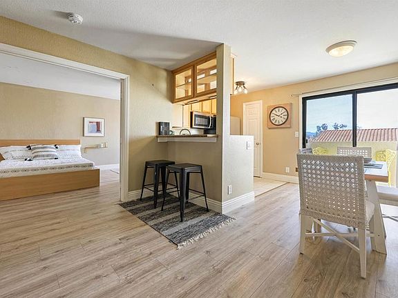 Enjoy stunning sunset and mountain views every day from your private balcony in this charming 1-bedroom, 1-bath condo. The spacious bedroom offers two closets and a versatile nook, perfect for a home office or additional storage. This home includes both a garage and an assigned parking spot for ultimate convenience. The well-maintained community offers fantastic amenities, including a pool and spa, outdoor shower and bathrooms, a clubhouse, and a spacious laundry facility. Centrally located with easy access to multiple freeways, as well as shopping, dining, and entertainment. Don’t miss this incredible opportunity!
