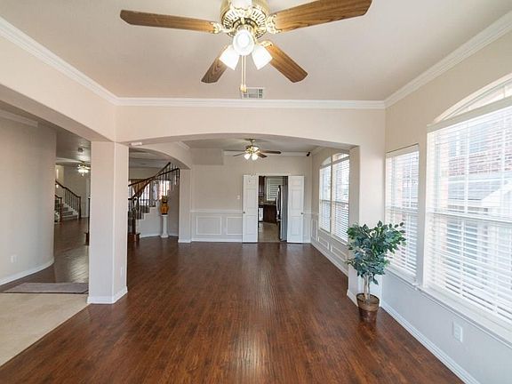 Charming 5-bedroom 3.5 bath house, perfectly located in Valley Ranch. Close to shopping, highways, schools, park, restaurants. Main floor has formal living and dining, family room and a guest or in-law suite with attached bath and walk in closet. Engineered hardwood flooring throughout first floor. Kitchen has granite countertops, Gas cooktop, SS refrigerator. Brand new carpet upstairs. Huge master bedroom with lots of natural light and spacious to accommodate a seating area. Game room and all secondary bedrooms are spacious. Separate stairs lead to media room that comes equipped with projector, screen, DVD player. Cute backyard with covered patio and swing, apt for relaxing. Ready for immediate move-in.