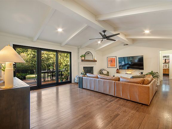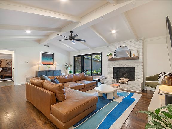 Nestled in the sought-after Casa Linda Forest neighborhood, 8731 Vinewood Drive offers a perfect blend of timeless architecture and modern sophistication. Set on more than half an acre with mature trees and serene creek frontage, this beautifully renovated home provides privacy and a natural backdrop rarely found so close to the city. Inside, an inviting open-concept layout showcases vaulted ceilings and refinished hardwood floors that flow seamlessly through expansive living and dining areas—perfect for both entertaining and everyday living. The spacious dining room easily accommodates large gatherings, while the living room centers around a striking gas fireplace framed by white brick, creating a warm and elegant focal point. The designer kitchen is a true showpiece, featuring quartz countertops, a dramatic waterfall island, stainless steel appliances, slate flooring, and a full-height backsplash that adds texture and depth. Two luxurious primary suites offer flexibility for multi-generational living or guest accommodations, complemented by a dedicated study ideal for work or creative pursuits. Each bathroom has been thoughtfully reimagined with boutique-style finishes, including frameless glass showers and double vanities. Step outside to your private backyard oasis—an idyllic retreat surrounded by mature trees and perfect for entertaining or quiet evenings. Located less than a mile from White Rock Lake, this home offers effortless access to trails, parks, and outdoor recreation, while remaining just minutes from Dallas’ best dining, shopping, and cultural destinations.