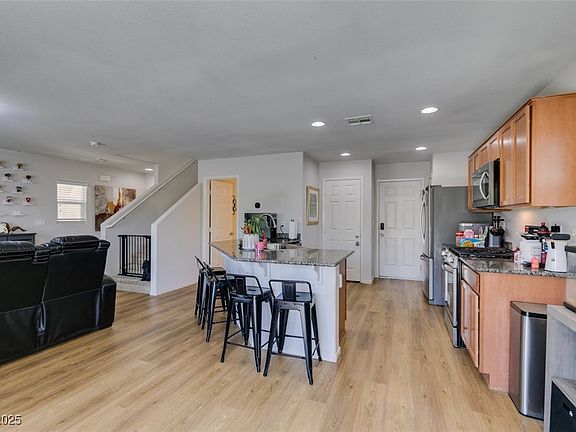 Beautiful home in Maravilla at Mountains Edge* Premium lot location backing onto Nathanial Jones Park with views of nearby Foothills* Open and bright great room floor plan* Spacious kitchen with granite counters, pantry, upgraded single basin stainless steel sink & new stainless steel appliances* New laminate wood flooring* Upstairs primary bedroom with walk-in closet* Spacious guest bedroom* Ceiling Fans* Blinds* All appliances included* Low maintenance front yard & backyard* Community park views* Tankless water heater* A MUST SEE!