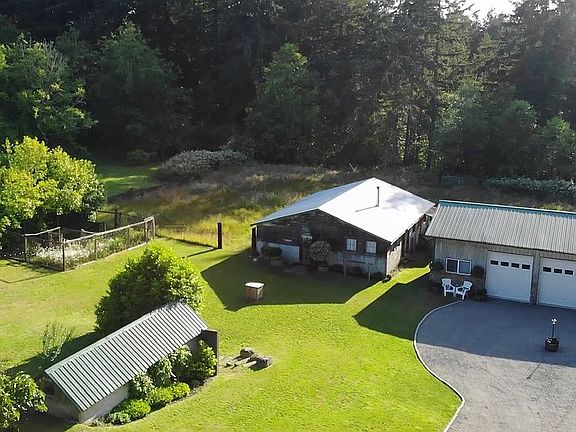 Mini Farmers Delight! Gated 2.48± acres; fenced garden space, fruit trees, old fashion root cellar (wine cellar?), chicken coop, barn for all critter + handyman's area, 4 bay shop w/12x24 office space, private well. Over 2200± sqft cedar home w/welcoming covered porch, great room concept, large country kitchen, river rock corner fireplace/stove, main floor master suite w/French doors to covered porch, large secondary bedroom, upstairs bonus rooms w/kitchenette, extensive hardwood floors, MORE!!