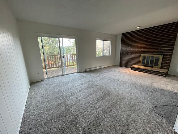 Convenient Montavilla Townhome that overlooks Glisan but accessed from a private driveway off 87th. This 3 bed/1 1/2 bath home lives like a tree house with nature views while located near the freeway and area amenities. Amenities include new carpet, butcher block counter tops, washer & dryer in unit, attached garage and extra storage room. (Fireplace in photos non-functioning)