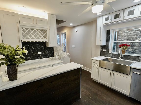 6 bedroom, 3 bath Chicago home with 3 kitchens, 2 laundry rooms, and separate entrances-ideal for multi-generational living or rental income. Features include a modern kitchen with quartz countertops, stainless steel appliances, custom coffee bar and walk-in pantry. Impress with custom accent wall in dining room. Basement offers a family room with a custom bar. Bonus room can be transformed into a playroom or closet. Bathroom feature beautiful tiles and modern shower panels. Move-in ready with endless possibilities!