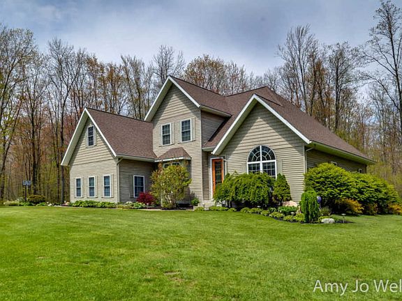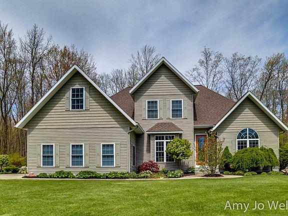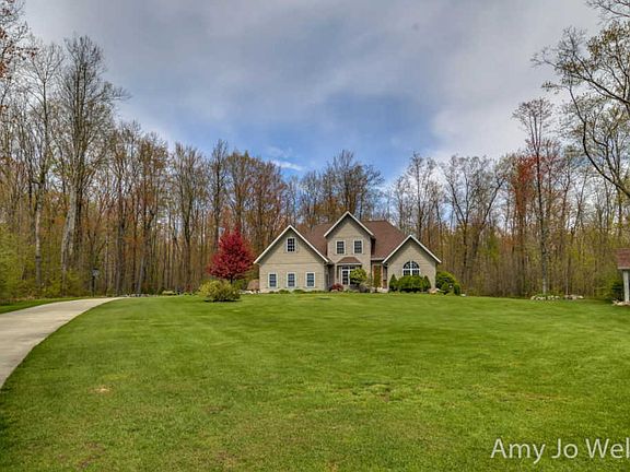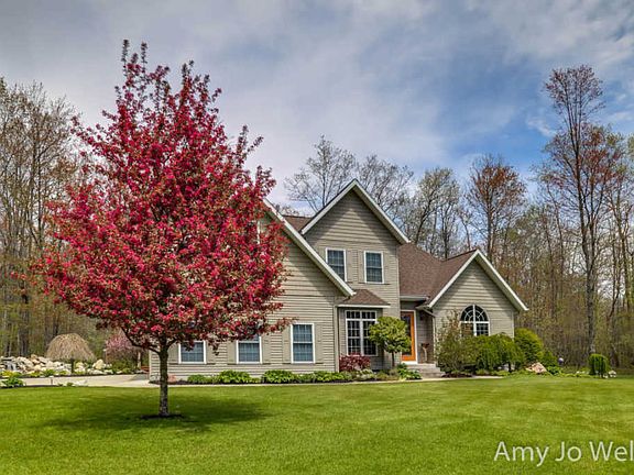 This 4+ bd, 3.5 bth home awaits the entertaining enthusiast. Less than 50 minutes from GR, you will have your outdoor paradise w/natural chlorinated pond for use as a water treatment or as a refreshing pool on those hot summer days. Enjoy your 20x42 covered deck complete w/outdoor kitchen, surround sound & much more. Additionally there are 2 outbuildings; 12'x16' w/OH door and porch, the other is 32'x48' fully insulted w/half bath.The home's interior boasts custom cabinetry throughout, main floor laundry as well as main floor master w/walk in closet. Master bath includes travertine tiled double shower. Livingroom includes gas fireplace surrounded in granite. Upper level shows bedrooms, bonus rm and full bath. Continue entertaining in the wide open, insulated lower level w/10' ceilings, full bath & plumbed for wet bar. Too many other features to list. Schedule your private showing today!! OPEN HOUSE Sun 6-4