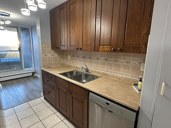 Renovated 2-bedroom high-rise condo near WEM, schools, parks, shops, Misericordia Hospital, and the upcoming LRT. Bright and freshly painted with new vinyl plank floors, baseboards, light fixtures, and ceramic tile in the entry, hall, and kitchen. Spacious living room with large windows, dining area, and sliding door to a covered southwest-facing balcony. Open kitchen features newer wood cabinets, tiled backsplash, and a nearly new stove, dishwasher, and hood fan. Bedrooms have large windows and new closet doors. Bathroom upgraded with full-height ceramic tile. Professionally managed building with newer windows, 2 elevators, onsite management, and a large laundry room. Low condo fees include heat, water, power, parking, exterior maintenance, and landscaping. Covered assigned parking stall. Perfect as a starter home or smart investment!!!