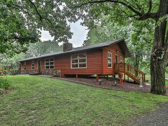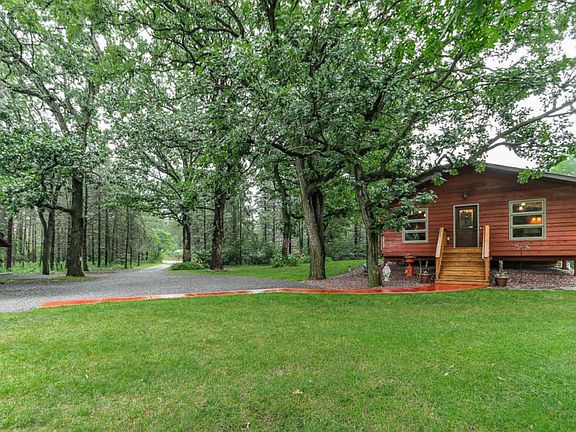 Pole barn/building and a "historical log cabin" on property. Great horse space or private yard. Building has power and water near by. Walk into the dining hall area and feel right a home. The dining hall has a gas fireplace and plenty of space. Kitchen has self closing drawers, oak hardwood floors throughout the home. New paint & carpet in lower level. The family room is a walk-out, has a bathroom close by and a fireplace too. Wifi thermostat, RV parking space by pole building.