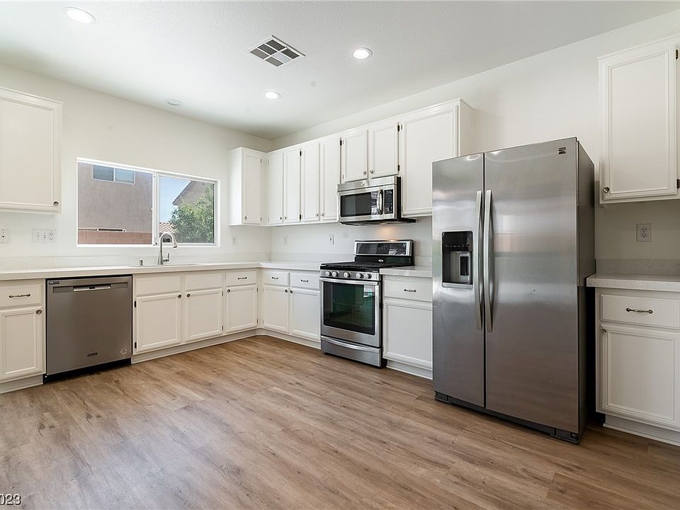 SELLER COMPLETED A HUGE REMODEL OVER $30k...NEW WOOD LAMINATE FLOORING,NEW QUARTZ COUNTERTOPS,NEW STAINLESS UNDERMOUNT SINK & FAUCET,NEW LED RECESSED LIGHTING IN KITCHEN, NEW BASEBOARDS, CABINETS PROFESSIONALLY PAINTED WITH NEW HARDWARE AND NEW PEDESTAL SINK & FAUCET IN FIRST FLOOR BATH! 3 CAR GARAGE + PAVED RV PARKING + 2791 SQ FT IN A CUL DE SAC + 4 BEDROOMS! BACKYARD IS SPACIOUS FOR A POOL/SPA * KITCHEN STAINLESS APPLIANCES INCLUDED + EXTRA REFRIGERATOR IN GARAGE INCLUDED. THE WALK IN PANTRY IS OVERSIZED + EXTRA STORAGE UNDER THE STAIRS. MASTER HAS A SEPARATE WATER CLOSET + SPACIOUS WALK IN CLOSET. UPSTAIRS LOFT AREA IS LARGE AND CAN BE A MEDIA ROOM. PAVED RV PARKING IS 10 FT X 35 FT FOR BOAT/RV/TRUCK. NOTE; Schools: Shadow Ridge HS / Ward for Elementary / Saville for Junior HS * THIS HOME HAS A LOT TO OFFER! ** SELLER WILL PAY FOR A HOME WARRANTY FOR BUYER **